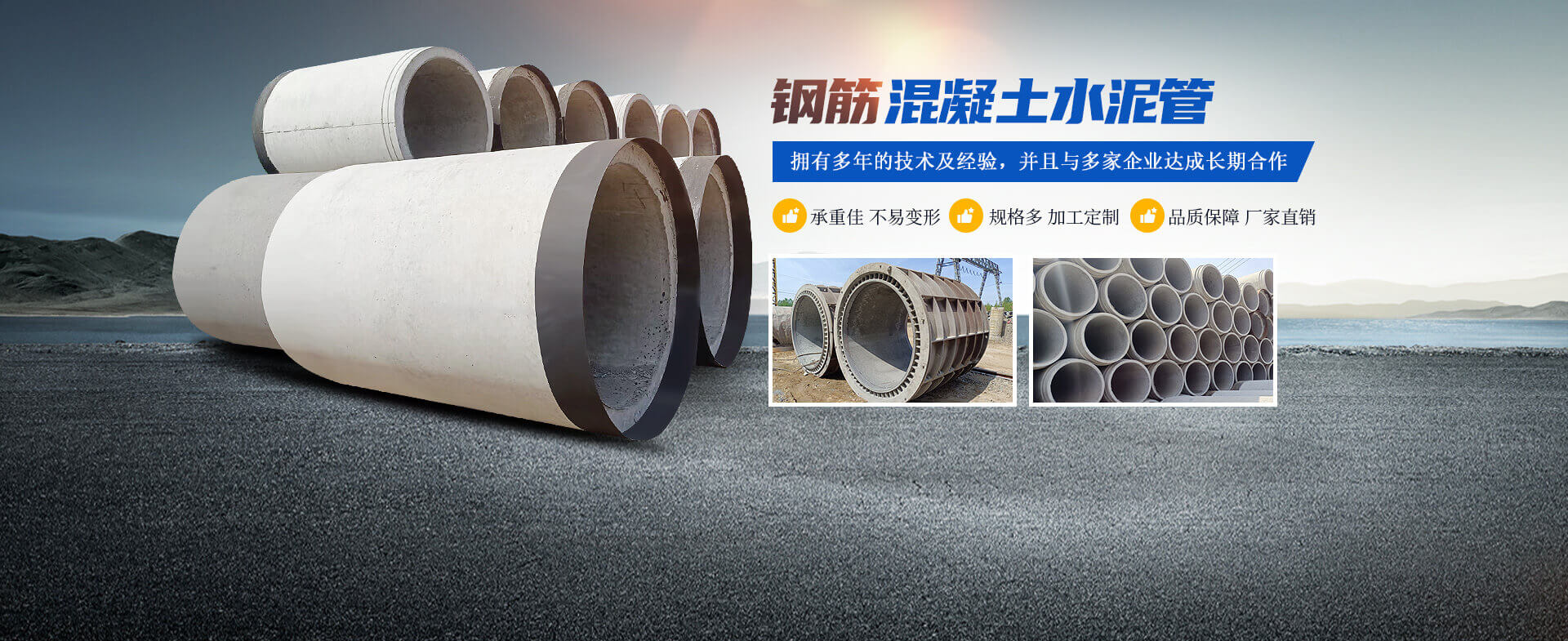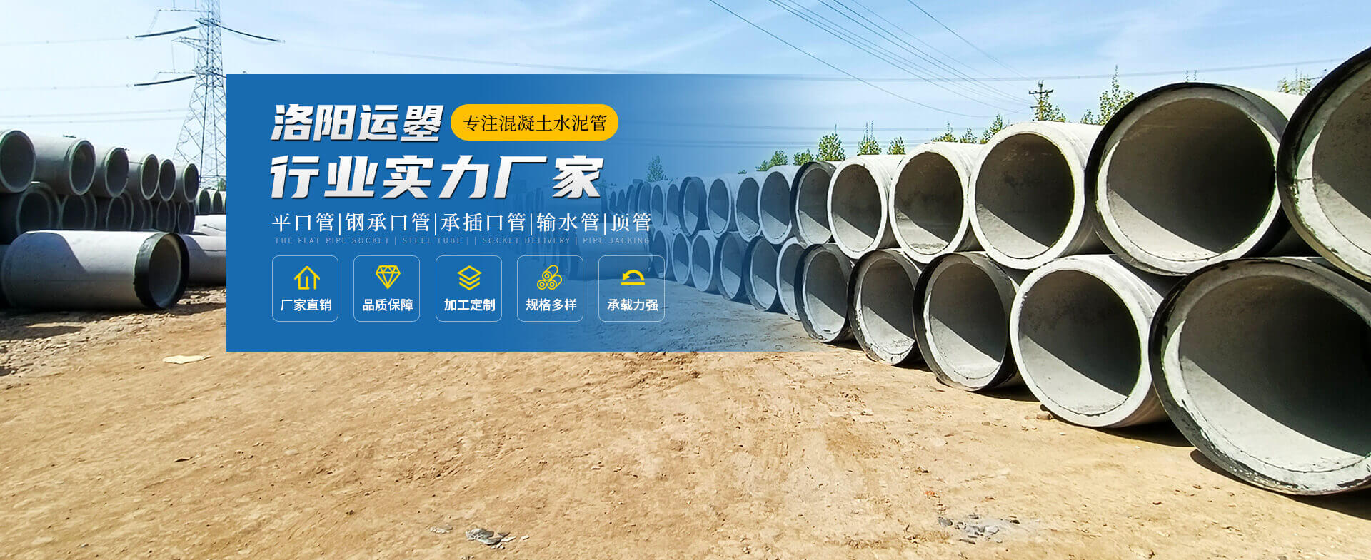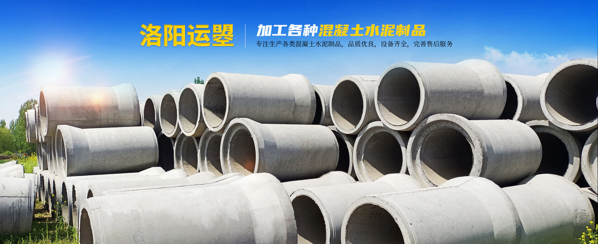 - 洛陽(yáng)運(yùn)曌建筑材料有限公司專(zhuān)于從事水泥制品開(kāi)發(fā)、制作、生產(chǎn)、銷(xiāo)售、工程服務(wù)為一體的綜合性企業(yè)。主要生產(chǎn)鋼筋混凝土排水管、鋼承口頂管、承插管、平口管、雨污井蓋、路沿石、水泥預(yù)制板、仿木圍欄護(hù)欄系列、畜牧系列等混凝土水泥預(yù)制品。 我公司生產(chǎn)的鋼筋混凝土排水管是依據(jù)執(zhí)行標(biāo)準(zhǔn)GB/T11836-2023生產(chǎn)檢驗(yàn)、擁有三條懸輥工藝生產(chǎn)線(xiàn);型號(hào)300-3000;年生產(chǎn)能力達(dá)30000米左右,質(zhì)量是企業(yè)之本.........了解更多>>
